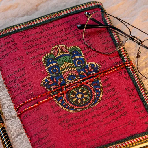 Celebrate the timeless beauty of Indian craftsmanship with these artisanal block print diaries. Diary is fabric-covered and adorned with traditional hand-block motifs, blending heritage patterns with vibrant colours, set against a backdrop of Sanskrit script. A unique fusion of utility and artistry, these diaries are ideal for personal use or as meaningful gifts.